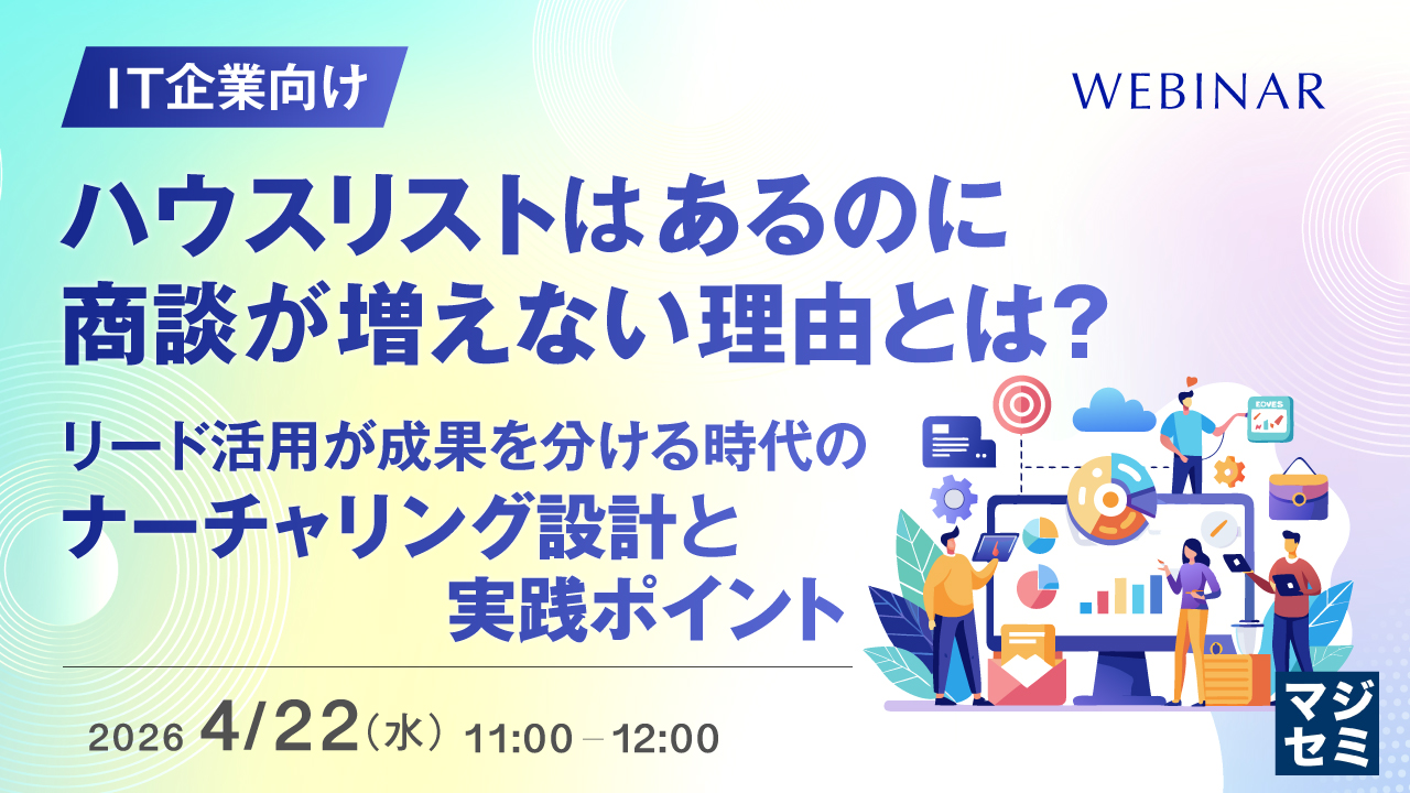 コンテンツマーケティング、ウェビナー・Webセミナー、広告戦略などデジタルマーケティングから、商談・リード獲得、CRM/SFA、Salesforceなど営業関連のツール&ノウハウまで、法人・個人顧客獲得のためのウェビナーを検索できます。
