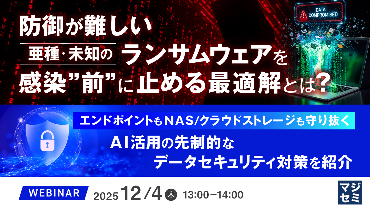 サイバー攻撃・不正アクセス、ランサムウェア・標的型攻撃、マルウェア対策、情報漏洩防止などの各種施策から、WebアプリケーションファイアーウォールやSWGのスキル・ツールなどセキュリティ関連のウェビナー情報です。