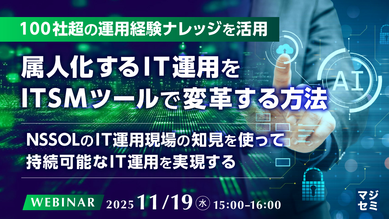 システムの保守・監視、ITサービスマネジメント、IT 資産管理、インシデント管理など、システムの管理・運用の課題を解決するウェビナーが満載。現場ですぐ活かせるノウハウや最新ツール情報が得られます。