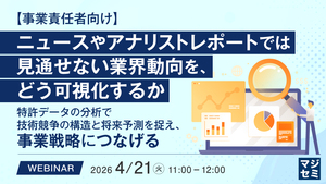 12:05~12:45 「知財部がない」「知財保護の相談先がない」リスク対策 ~特許動向で見える、リスクと技術戦略の打ち手~