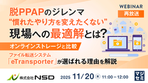 13:05~13:35 脱PPAPのジレンマ、“慣れたやり方を変えたくない”現場への最適解とは?~オンラインストレージと比較、ファイル転送システム「eTransporter」が選ばれる理由を解説~