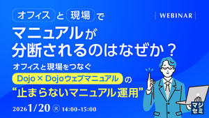 Dojoシリーズ は、生成AI搭載の自動マニュアル作成ツールです。 パソコン操作からマニュアルを生成する 「Dojo」 と、 動画から自動手順書を作成する 「Dojoウェブマニュアル」。 2つの製品をお得に導入できる 「One Dojo」 なら、オフィス業務も現場作業もひとつの仕組みで自動作成・共有できます。事例では、 マニュアル作成工数を最大96%削減 し、教育・引継ぎ時間を大幅に短縮。セミナーでは、実際にマニュアルが自動生成されるデモもご紹介します。