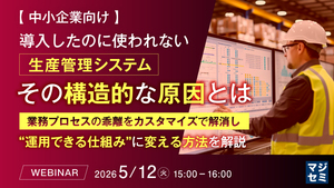 本セミナーでは、生産管理システム「FUSE(フューズ)」を通して、少量多品種・変動の多い環境下でも計画を破綻させないための、生産管理の考え方と具体的な運用ポイントを解説します。