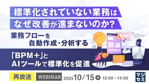13:05~13:45 BPR、BPM、DXを推進するための重要要素・起点は何か? ~業務フローチャート自動生成ツールにより、課題の可視化に関わるお悩みを解決〜