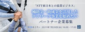 「NTT東日本との協業ビジネス」補助金・助成金を活用したテレワーク事業を始めたいパートナー...