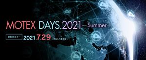 名称:MOTEXDAYS.2021 -Summer- 日時:2021年7月29日(木)13:30~(13:00開場) 開催場所:WEBセミナー 申込締切:2021年7月29日(木)16:20 参加費用:無料(事前登録制) 参加条件:同業他社さま、リクルーティング、勧誘など、採用目的での参加をご遠慮頂いております。 お問い合わせ:株式会社マイナビ ニュースメディア事業部 マイナビニュースセミナー運営事務局 eメールアドレス: mj-event@mynavi.jp