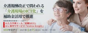 本セミナーでは、介護保険法改正におけるICT化推進や2021年度の補助金制度における申請のポイントなどを分かりやすく解説します。また、介護現場の課題を解決できるICTツールの具体例として、数クリックで介護記録が作成できるAI入力予測ツール「記録NAVI」、AIと赤外線センサーによる被介護者のプライバシーに配慮した見守りサービス「kizkia-Knight」をご紹介いたします。