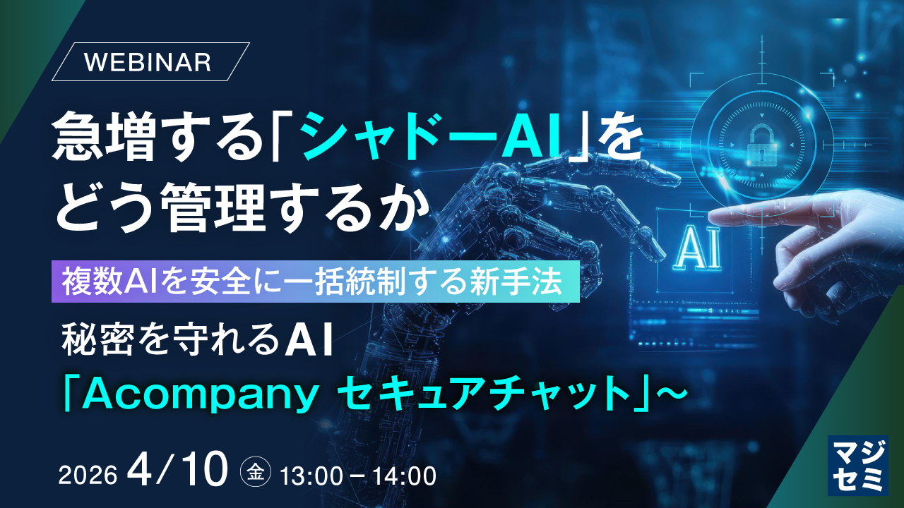 13:05~13:45 企業で急増する「シャドーAI」をどう管理するか 〜複数AIを安全に一括統制する新手法 秘密を守れるAI「Acompany セキュアチャット」~