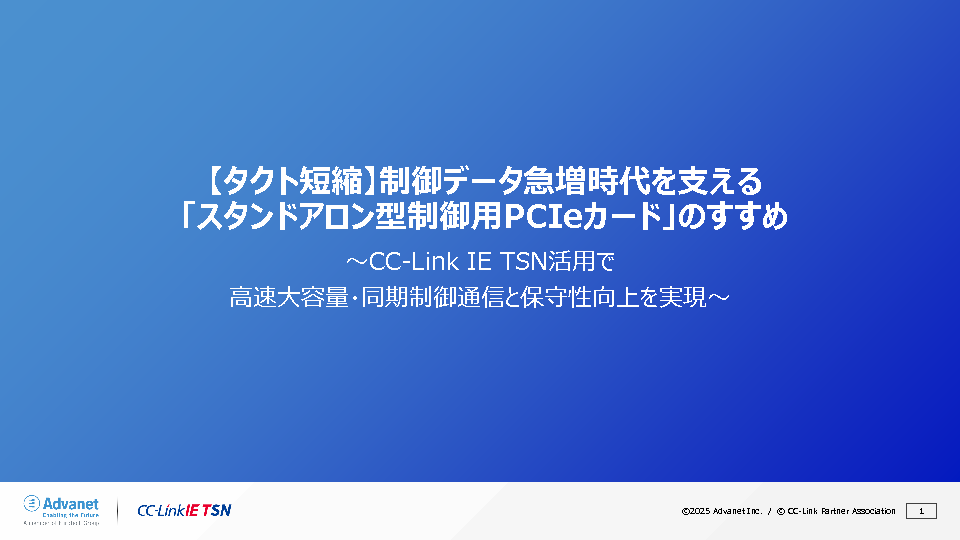 【タクト短縮】制御データ急増時代を支える「スタンドアロン型制御用PCIeカード」のすすめ ~CC-Link IE TSN活用で高速大容量・同期制御通信と保守性向上を実現~