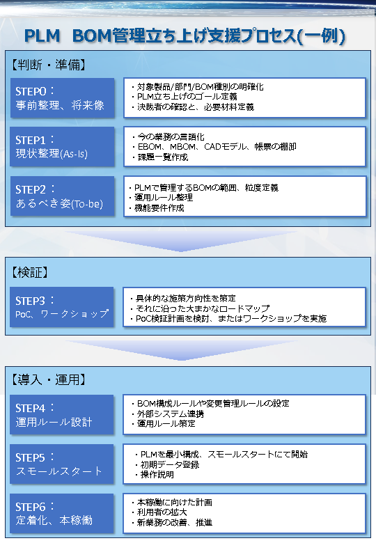 設計部門内の効率化が目的であればPDMで十分な場合もありますが、製造や他部門まで含めた変更管理やBOM統合を実現したいのであれば、PLMの検討が必要になります。