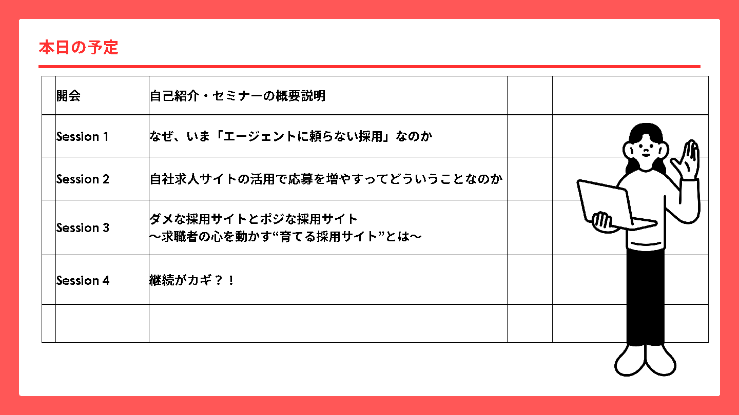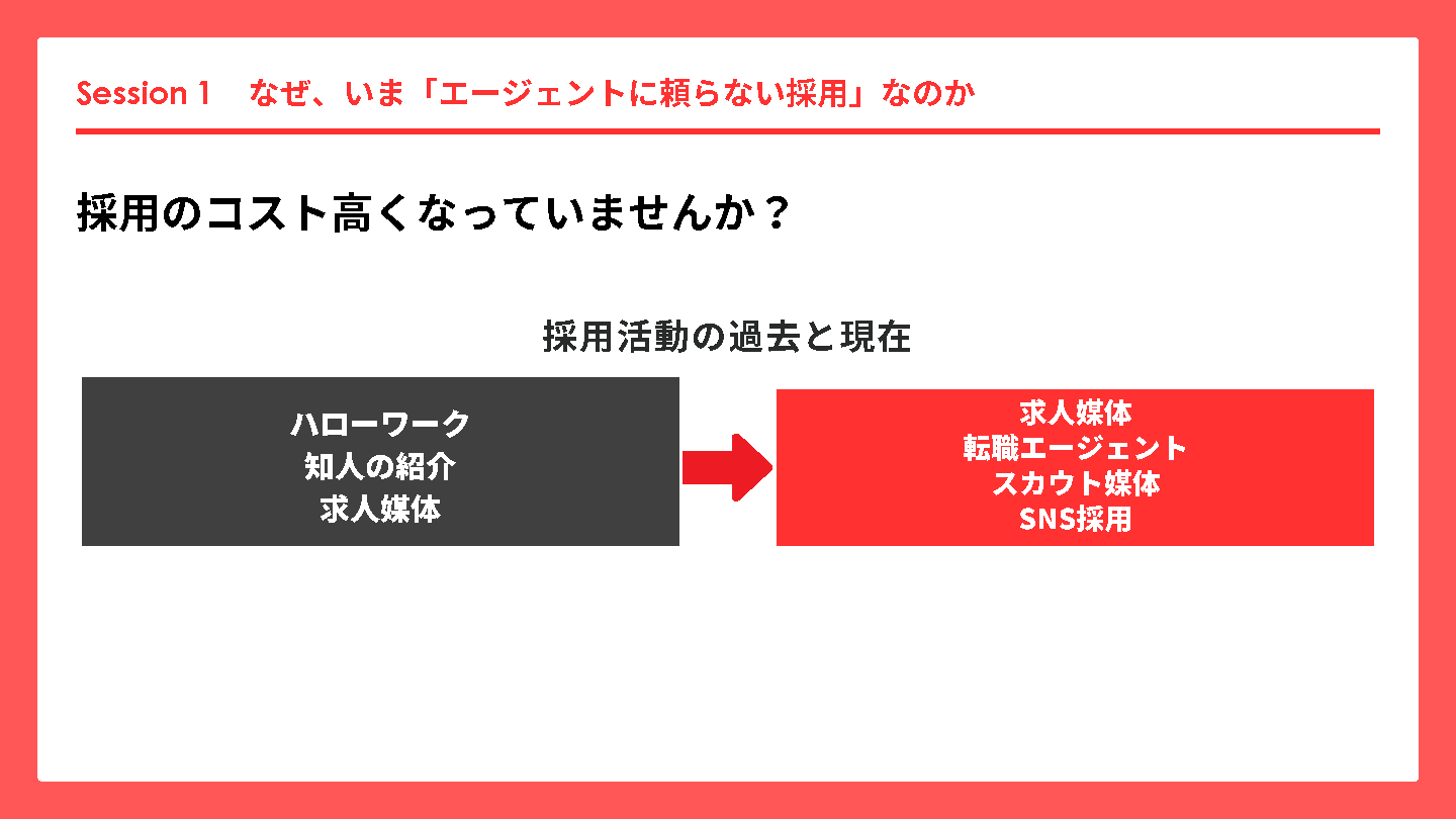 本セミナーでは、「エージェント頼み」から脱却し、“自社で人を集める採用”に変えるための考え方と実践ポイントをお伝えします。
