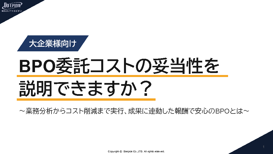 15:05~15:45 【大企業向け】BPO委託コストの妥当性を説明できますか? ~業務分析からコスト削減まで実行、成果に連動した報酬で安心のBPOとは~