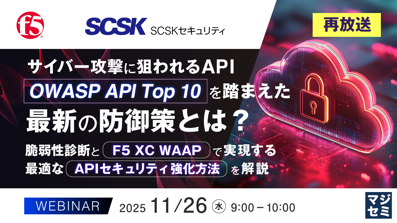 09:05~09:45 サイバー攻撃に狙われるAPI、「OWASP API Top 10」を踏まえた最新の防御策とは?~脆弱性診断と「F5 XC WAAP」で実現する最適な「APIセキュリティ強化方法」を解説~
