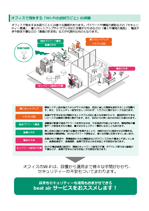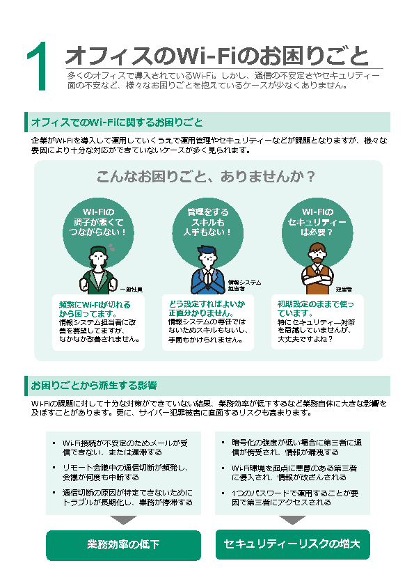 拠点やフロアの増加、端末の多様化、来訪者利用の常態化によって、企業Wi-Fiは“つながれば十分”から“継続的に守る運用が必要”な領域へ変わっています。ところが現場では専任不在や兼務が前提となり、設定変更や利用者追加・削除、ログ確認、障害の一次切り分けといった日常運用が後回しになりがちで、担当者の経験に依存した属人化が進みます。結果として「見ていない時間」が生まれやすく、平時の不安が増えるだけでなく、有事の初動遅れや責任の空白につながりやすい状況が起きています。