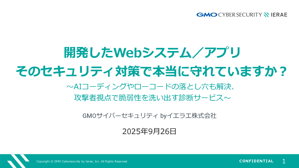 12:05~12:45 開発したWebシステム/アプリ、そのセキュリティ対策で本当に守れていますか?~AIコーディングやローコードの落とし穴も解決、攻撃者視点で脆弱性を洗い出す診断サービス~