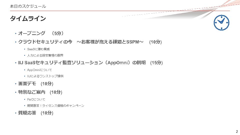本セミナーは、主に従業員1,000人以上の企業で情シスやインフラ/ネットワーク運用、セキュリティ運用を担う担当者の方を対象に開催します。国内外のSaaSインシデント事例や運用課題を整理し、解決策として注目されるSSPMの仕組みと導入効果を解説。さらに、SSPM機能を備えた「IIJ SaaSセキュリティ監査ソリューション」の特徴や、「AppOmni」による豊富な診断項目・不審アクセス検出・外部連携監査など具体的な機能をご紹介します。