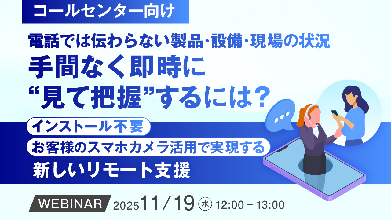 12:05~12:45 【コールセンター向け】電話では伝わらない製品・設備・現場の状況、手間なく即時に“見て把握”するには? ~インストール不要、お客様のスマホカメラ活用で実現する新しいリモート支援~