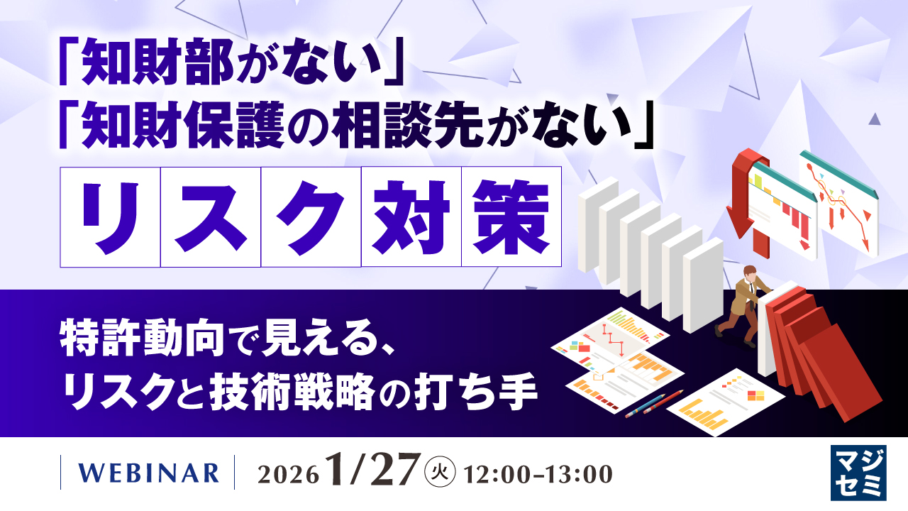12:05~12:45 「知財部がない」「知財保護の相談先がない」リスク対策 ~特許動向で見える、リスクと技術戦略の打ち手~