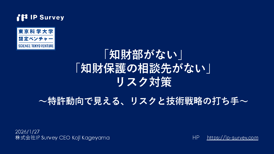 12:05~12:45 「知財部がない」「知財保護の相談先がない」リスク対策 ~特許動向で見える、リスクと技術戦略の打ち手~