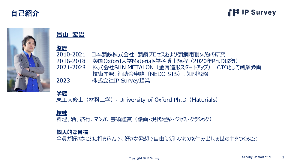 本セミナーでは、専門家が社内にいない環境でも、重要な知財を保護するために、技術動向と競争力を可視化する重要性を解説すると共に、IP Surveyが開発した特許評価ソフト「IP GENE」を活用したアプローチについて紹介します。