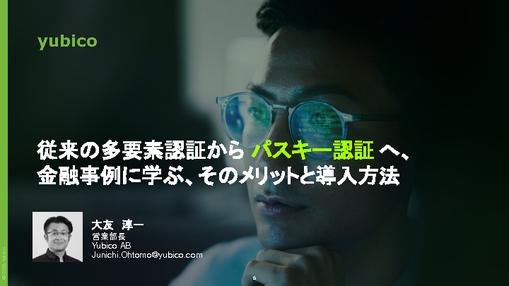 12:05~12:45 パスワードとOTP依存の限界、金融機関の認証基盤を揺るがす二大リスク〜パスワードレス認証とYubiKey活用、アメリカ事例に学ぶ金融セキュリティ強化〜