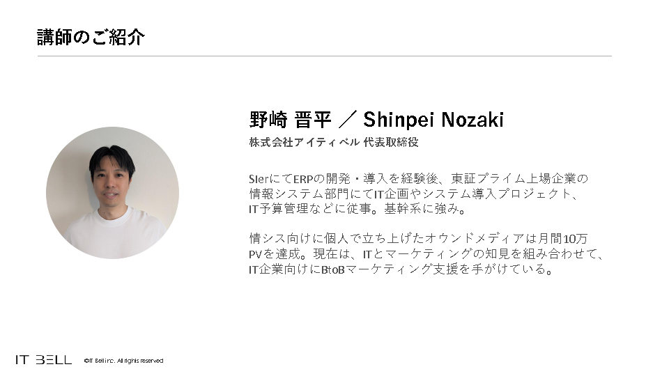 11:05~11:45 「リード育成できてない」「休眠顧客が放置されている」という課題をどう解決するか? ~IT特化のプロ集団が作る専門コンテンツで商談化率アップを狙う~