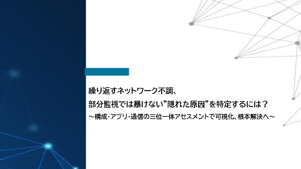 繰り返すネットワーク不調、部分監視では暴けない"隠れた原因"を特定するには? ~構成・アプリ・通信の三位一体アセスメントで可視化、根本解決へ~