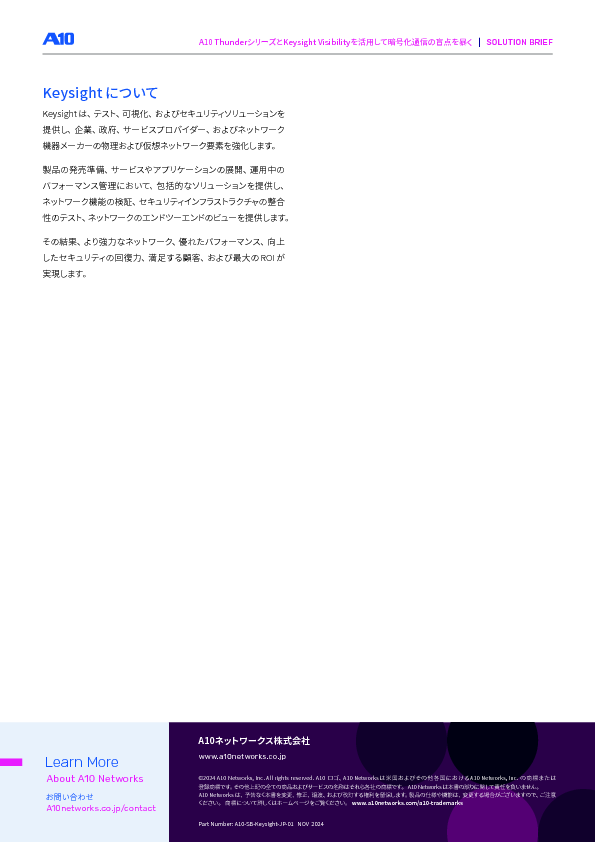 10:05~10:45 暗号化通信に隠れたランサムウェア関連の不審通信、NDR・IDS検知の過負荷を放置していませんか?~Keysight×A10でSSL/TLS暗号化通信を可視化しゼロトラスト実現を支える~