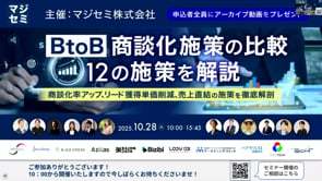 | 14:25-14:50 | 「集客できても商談に繋がらない」その理由と対策「獲得したリードから商談につながらない」という課題を持たれている方も多いと思います。今回は、実際にそのような悩みを持たれていたクライアント様に対して、マジセミが全力で取り組んだ事例を紹介します。AIアバターも活用して従来の5倍の商談獲得に成功した、具体的な改善ポイントを解説します。 |