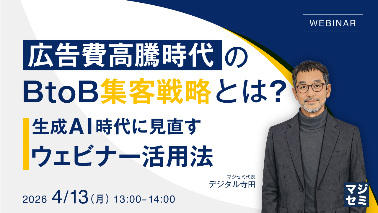 本セミナーでは、広告費高騰時代のBtoB集客において、ウェビナーを単なる認知施策ではなく、見込み顧客の理解促進から商談創出までを担う戦略的な接点としてどう活用すべきかを、マジセミのサービスの内容を交えて解説します。