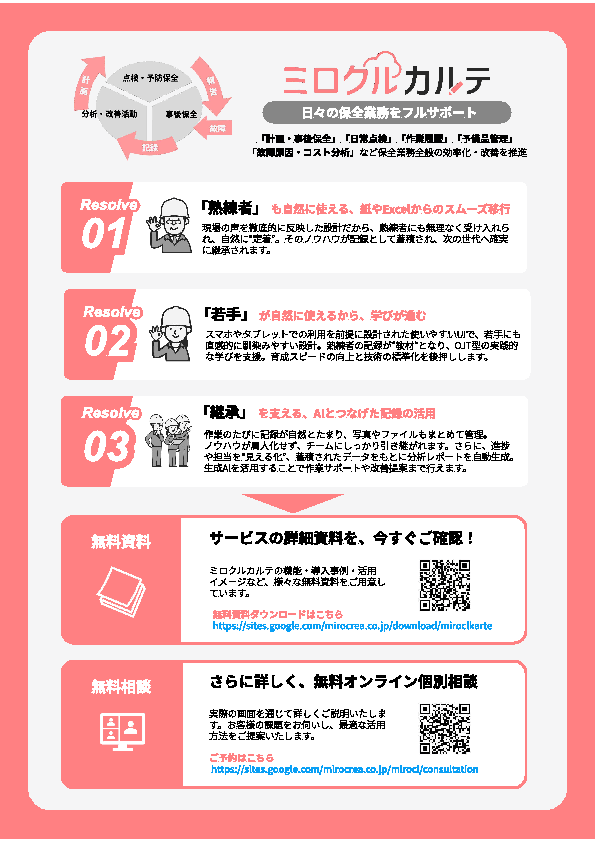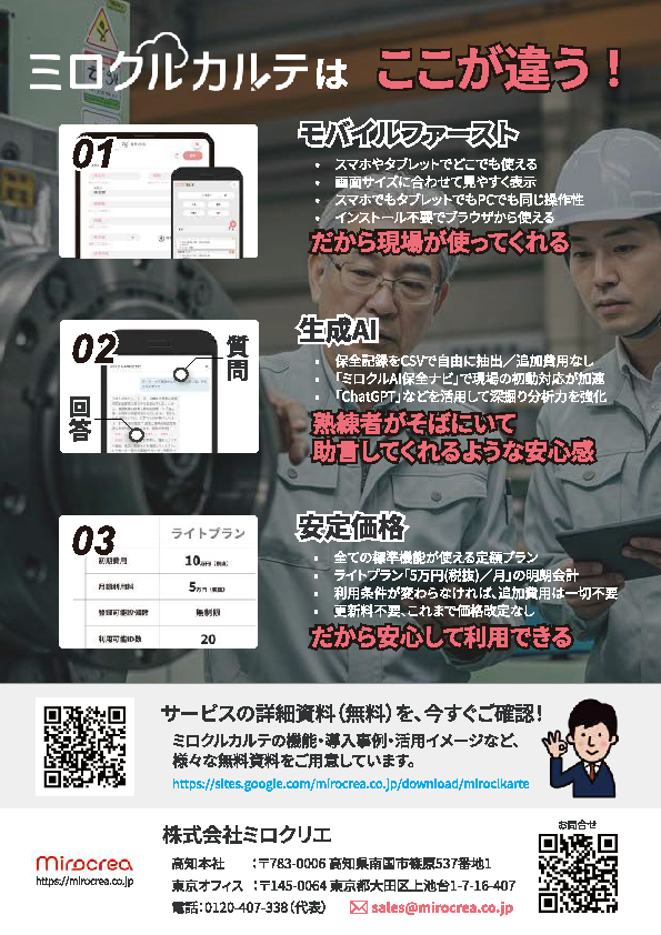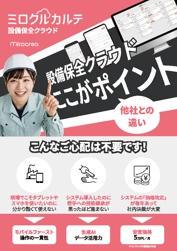 本セミナーでは、設備保全ツール「ミロクルカルテ」を活用し、現場での定着と成果創出に成功した企業事例をご紹介します。