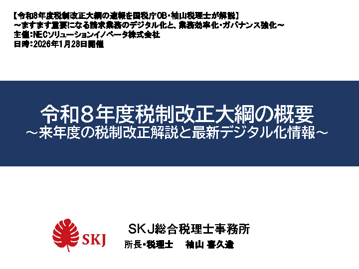 本セミナーでは、国税庁OBである袖山税理士が、令和8年度税制改正大綱の速報をわかりやすく解説します。
