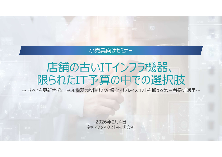 12:05~12:45 店舗の古いITインフラ機器、限られたIT予算の中での選択肢 ~ すべてを更新せずに、EoL機器の故障リスクと保守・リプレイスコストを抑える第三者保守活用 ~