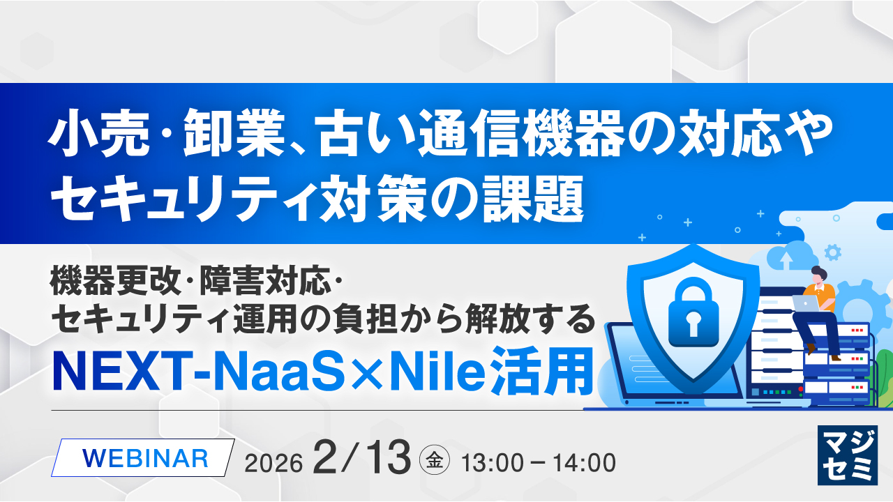 13:05~13:45 小売・卸業、古い通信機器の対応やセキュリティ対策の課題 ~機器更改・障害対応・セキュリティ運用の負担から解放する、NEXT-NaaS×Nile 活用~