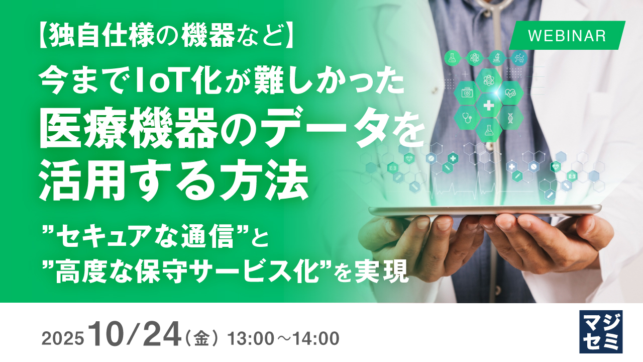 本セミナーでは、IoTプラットフォーム『Toami』を活用し、古い装置や独自仕様を持つ医療機器からデータを取得し、可視化からサービス化までの活用方法を事例とともに解説します。
