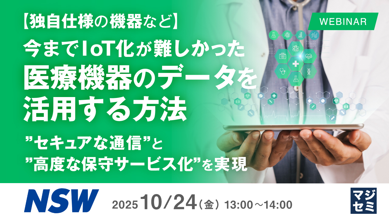 本セミナーでは、IoTプラットフォーム『Toami』を活用し、古い装置や独自仕様を持つ医療機器からデータを取得し、可視化からサービス化までの活用方法を事例とともに解説します。
