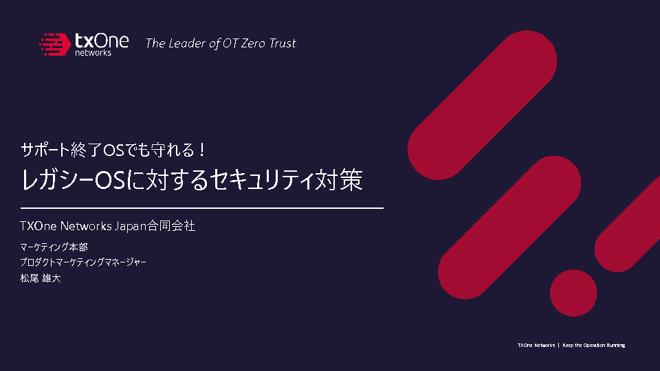 10:05~10:35 サポート終了OSでも守れる!レガシーOSに対するセキュリティ対策セミナー(TXOne Networks Japan合同会社)