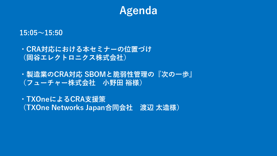 ・CRA対応における本セミナーの位置づけとアジェンダのご説明(岡谷エレクトロニクス)
