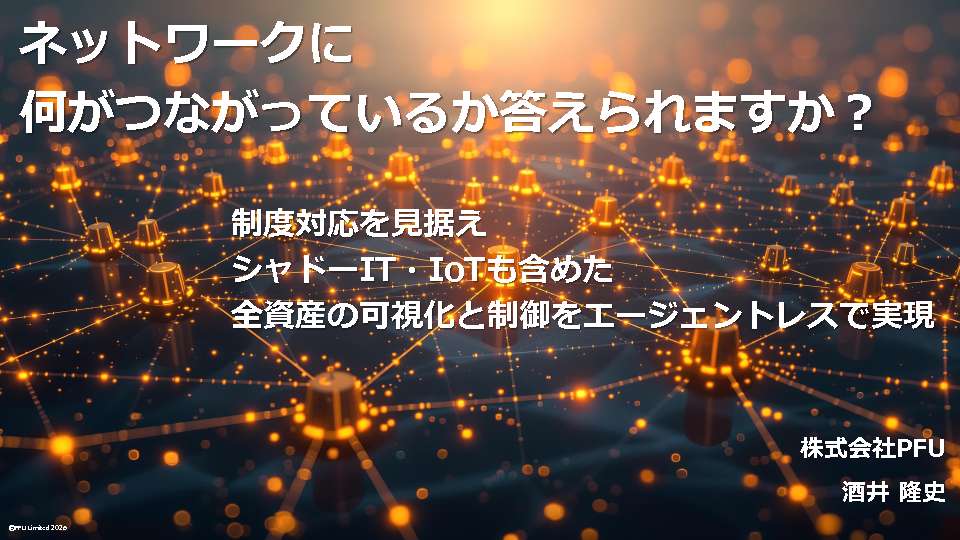 ネットワークに何がつながっているか、答えられますか? ~制度対応を見据え、シャドーIT・IoTも含めた全資産の可視化と制御をエージェントレスで実現~