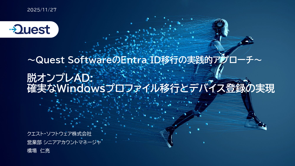 11:05~11:45 【ユーザ企業向け】脱オンプレAD:確実なWindowsプロファイル移行とデバイス登録の実現 ~Quest SoftwareのEntra ID移行の実践的アプローチ~