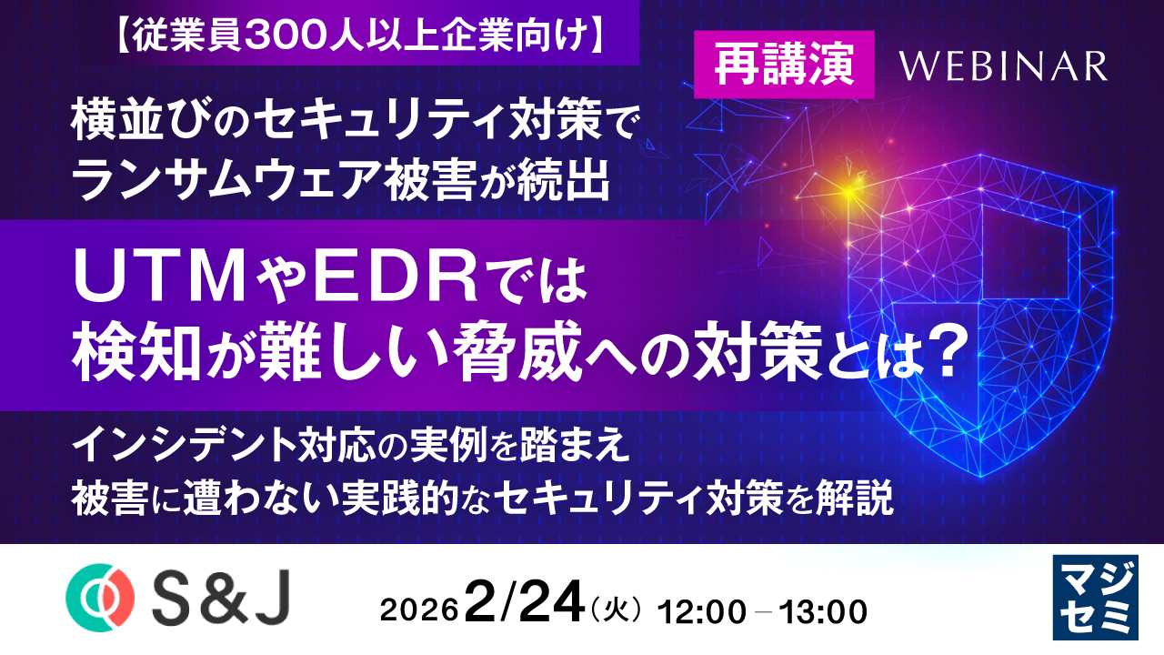 本セミナーでは、豊富なセキュリティ事故対応の経験を持つS&Jが、実際のインシデント対応の支援事例を通じて見えてきた、日本で発生しているランサムウェア被害の攻撃手法や攻撃フロー、そして従来型セキュリティ対策とのミスマッチについて詳しく解説します。