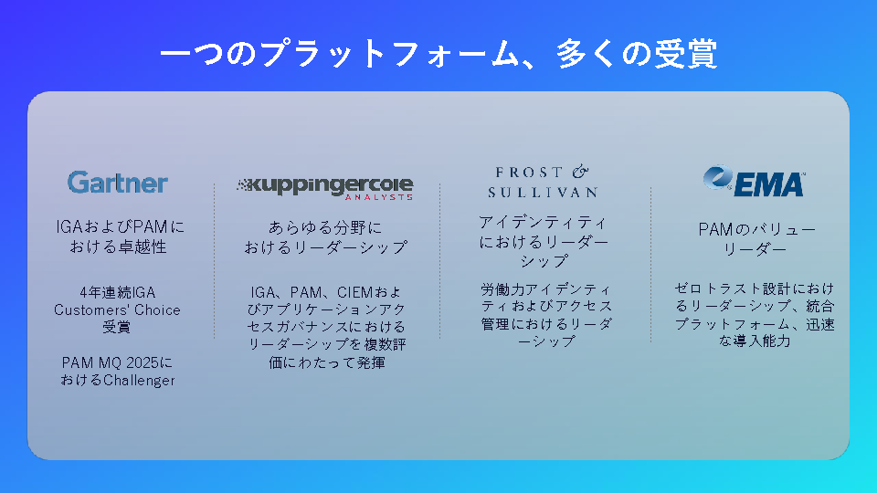 また、オンプレミスとクラウドが混在する環境では、従来のIAM(認証)基盤や独自運用では管理が追いつかず、「誰が・何に・どこまでアクセスできるのか」の可視化が急務となってきました。