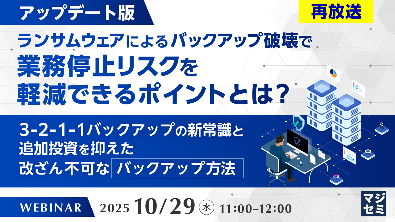 11:05~11:45 【アップデート版】ランサムウェアによるバックアップ破壊で業務停止リスクを軽減できるポイントとは? 〜3-2-1-1バックアップの新常識と、追加投資を抑えた改ざん不可なバックアップ方法〜