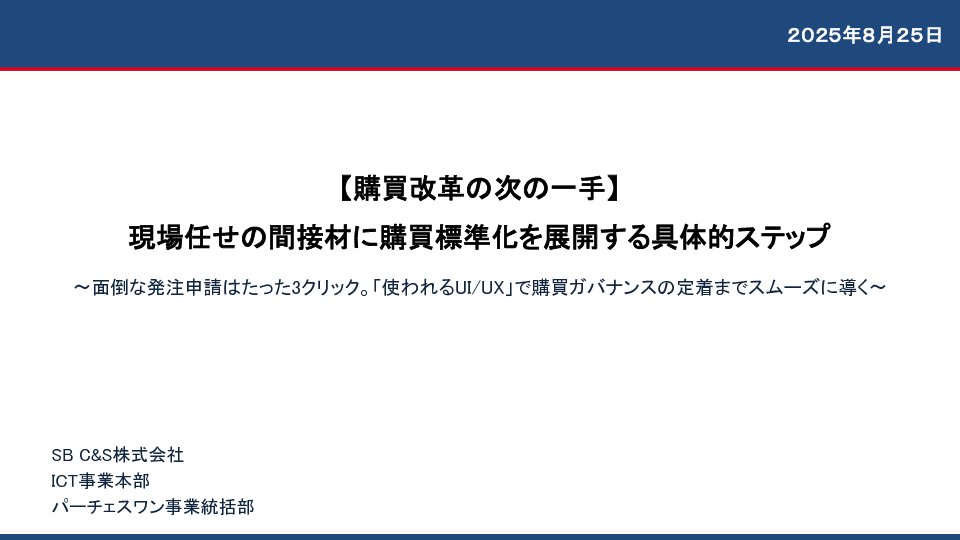 次のステップとして、間接材の購買にも「コンプライアンス強化」「購買統制強化」「業務効率化」といった視点を全面的に導入し、組織的な仕組みとして定着させることが求められています。