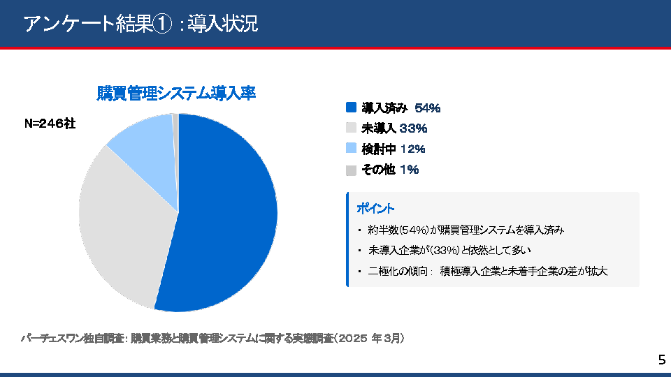 本セミナーでは、誰でも迷わず使える直感的なUI/UXと、発注までわずか3クリックという操作性を備えた購買システム「パーチェスワンクラウド」を活用し、間接材購買の標準化とガバナンス定着をスムーズに実現するための具体的なアプローチをご紹介します。