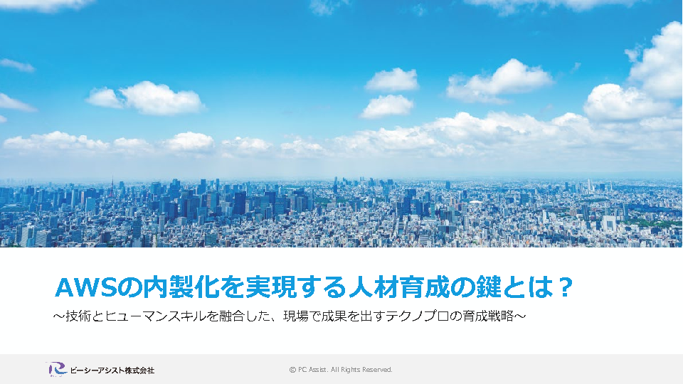 ピーシーアシスト社が提供する研修プログラムは、AWSの設計・運用スキルの習得に加え、チーム内での課題解決力やプロジェクト推進力を養うためのカリキュラムを統合。実際にユーザー企業の声をもとに、AWS研修単体では実現しにくい“成果を出せる育成体系”を事例を交えて解説します。技術とヒューマンスキルを掛け合わせ、AWS内製化を真に実現するための人材育成の最前線を、具体的なプログラム構成と成果例を通してご紹介します。