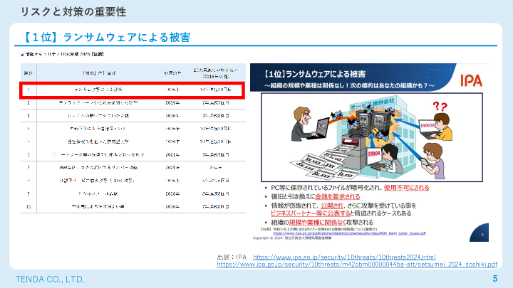 警察庁の最新レポートによると、ランサムウェア攻撃の被害は依然として高止まりしています。攻撃は暗号化だけでなくデータ流出や二重恐喝へと巧妙化しており、被害額や業務停止の期間も深刻化しています。こうした状況を踏まえ、中小企業も含む幅広い企業を対象に、今年度末頃の制度開始を目指す「サプライチェーン強化に向けたセキュリティ対策評価制度(SCS評価制度)」の検討が進んでおり、各社には対策状況の可視化と対応が求められています。