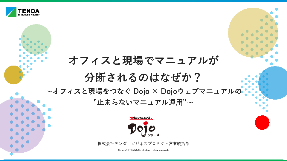14:05~14:45 オフィスと現場でマニュアルが分断されるのはなぜか? ~オフィスと現場をつなぐ Dojo × Dojoウェブマニュアルの止まらないマニュアル運用