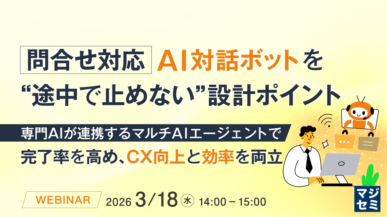 本セミナーでは、 単一AIエージェントとマルチAIエージェントの違い を整理しながら、複雑な問い合わせほど結果に差が出る理由 を分かりやすく解説します。そのうえで、業務内容に応じて安定した対応から柔軟な判断まで、適した対話AIを組み合わせて解決に導く 「マルチAIエージェント」 の考え方 をご紹介します。