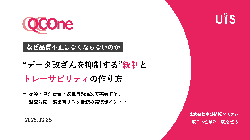 本セミナーでは、品質不正がなくならない構造的要因を整理したうえで、品質管理システム『QC-One』を活用し、改ざんが成立しにくい統制設計と、信頼性の高いロットトレーサビリティの実装方法を解説します。